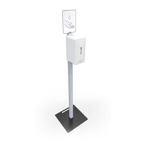 A freestanding sanitiser dispenser unit with an A4 rigid plastic frame for displaying information. Protect staff and customers by encouraging hand sanitising.