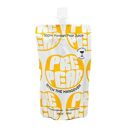 "PrePear is 100% natural, pre-alcohol drink that's been scientifically shown to support alcohol metabolism. Simply enjoy a pouch of our Shingo Korean pear juice 20 minutes before consuming alcohol to get the next day benefits. Science has shown that Shingo pears activate two key enzymes, ADH and ALDH, which help break down alcohol and acetaldehyde, the compound responsible for hangover symptoms.Crafted from premium South Korean pears through a specialised, patented juicing process, each pouch retains the whole fruit's maximum nutritional benefits for a potent dose of wellness. Free from added sugars and artificial preservatives, PrePear is a natural option for those seeking balance between wellness and celebration."